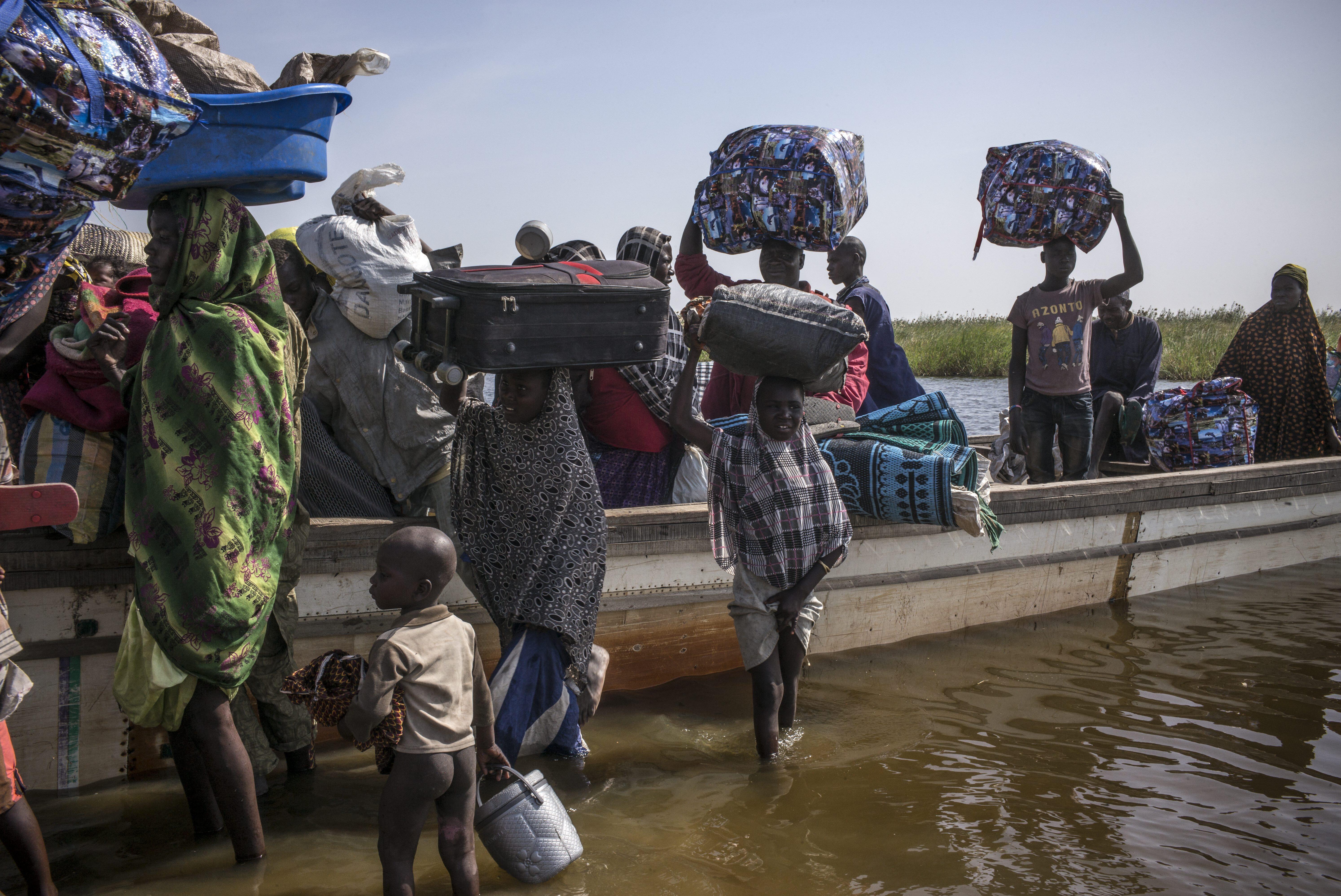 Des réfugiés nigérians arrivent épuisés à Baga Sola, au Tchad. Ils ont survécu pendant des semaines en buvant l'eau du lac, en se nourrissant de leur pêche et grâce à l'aide de quelques habitants locaux.
