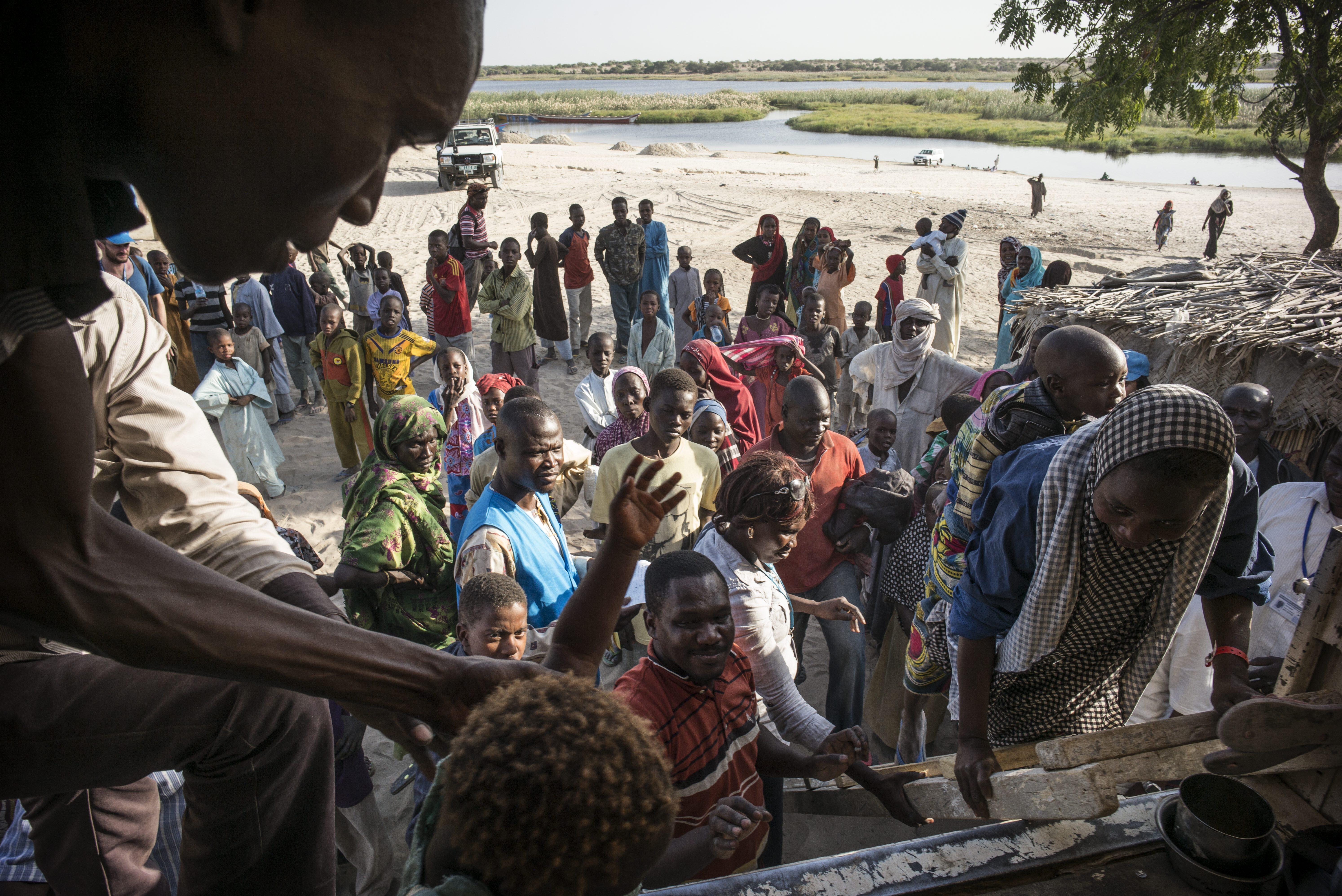 Ce bateau est le dernier affrété par les autorités tchadiennes et le HCR pour acheminer quelque 7 000 survivants dispersés à travers d'innombrables îlots, des parcelles de sable qui semblent s'être détachées de la terre ferme, un peu comme des icebergs décrochés d'un glacier. Les conditions y sont très précaires et de nombreux réfugiés ne survivent que grâce à l'aide des rares habitants. Leur transfert vers Dar-es-Salam, un site planté dans la brousse aride à 75 kms de la frontière nigériane, est une priorité humanitaire aussi urgente que difficile.