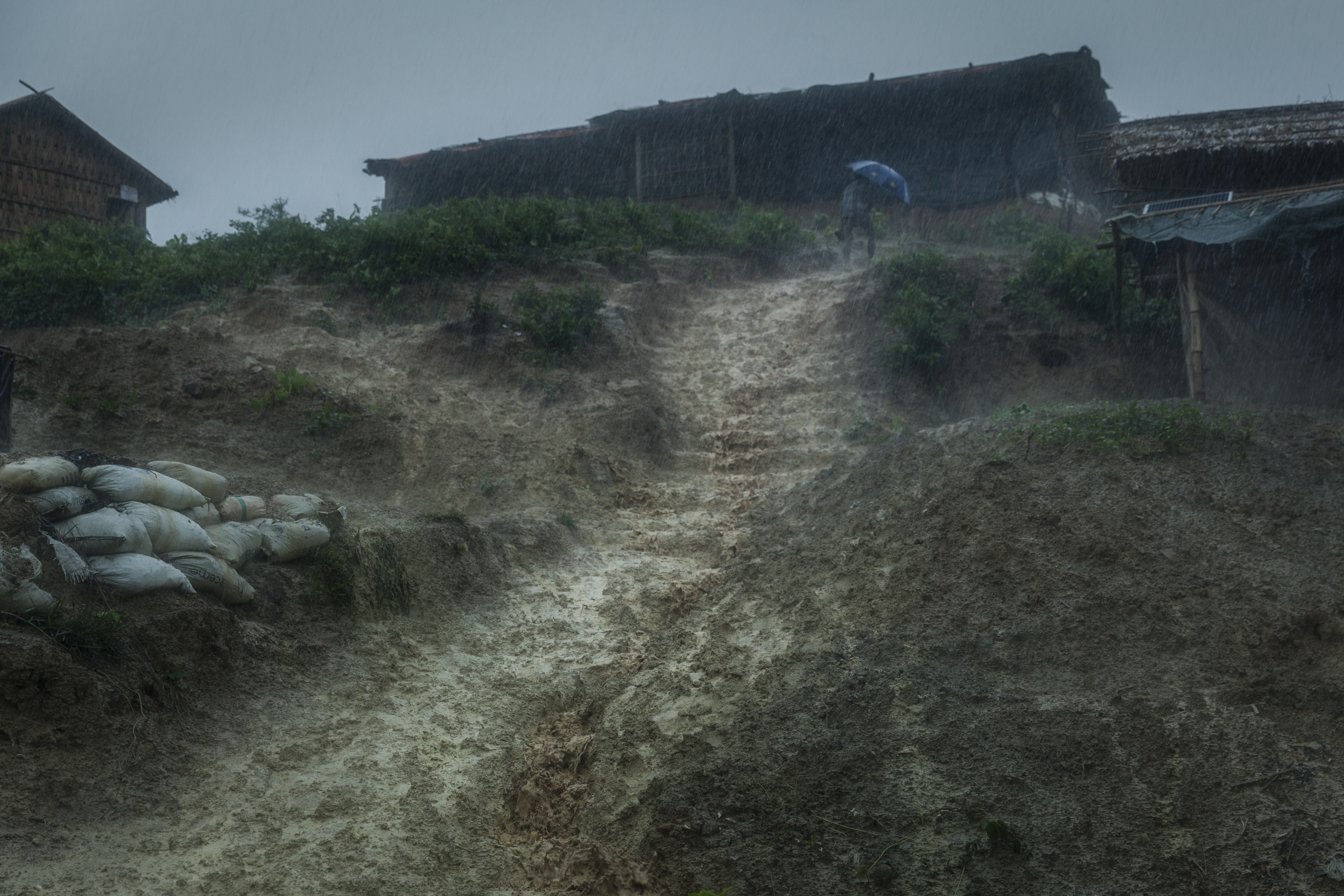 Dans la région de Cox's Bazar, où vivent plus de 900 000 réfugiés rohingyas dans 36 localités différentes, plus de 200 000 réfugiés ont été exposés à des glissements de terrain et à des inondations mettant leur vie en danger et 41 000 d’entre eux ont dû être transférés vers des lieux plus en altitude pour leur sécurité.