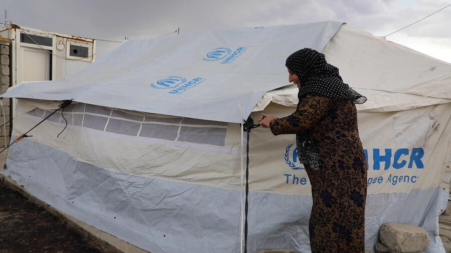 A son arrivée au camp de Bardarash, près de Dohouk, dans le cadre d’un convoi d'autocars transportant des centaines de réfugiés nouvellement arrivés depuis le nord-est de la Syrie, Amina, 64 ans, était épuisée par la marche de plusieurs heures qu’elle avait entreprise peu avant en quête de sécurité pour rejoindre la région du Kurdistan irakien.