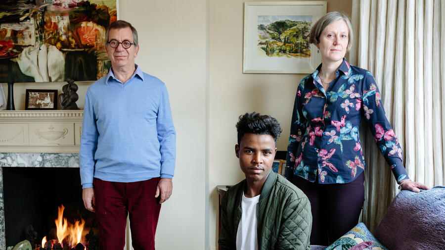 Charles Elliott, 61 ans, et sa femme Catharine, 55 ans, accueillent Hussein, 20 ans, d'Éthiopie depuis octobre 2016.