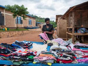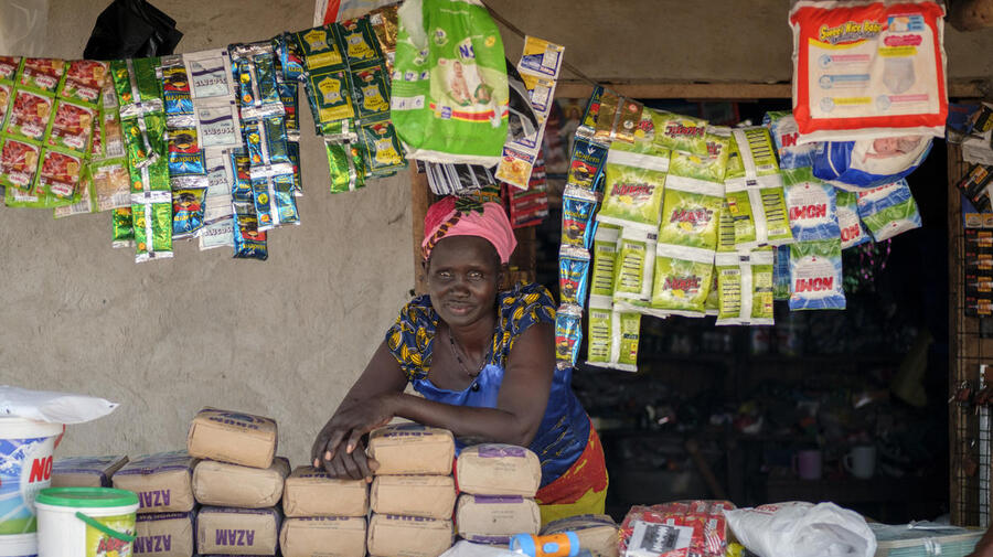 Une Sud-Soudanaise tient une échoppe dans l'installation de réfugiés de Nymanzi, district d'Adjumani, au nord de l'Ouganda.