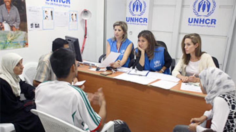 Lundi, à l'aube, après une nuit sans sommeil dans l'avion arrivant de New York, Angelina Jolie a visité le centre d'enregistrement de l'UNHCR où quelque 2 500 Iraquiens sont enregistrés chaque semaine, dont près d'un quart sont des victimes de la violence et de la torture.