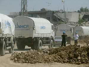 « Nous ne pouvons habiter dans notre maison maintenant, comme d'ailleurs c'est le cas de nombreuses autres familles mais, nous voulons quand même être ici pour la rénover et être sûrs que nous allons recevoir de l'aide », a indiqué Adib. Au départ sa famille n'a pas bénéficié des distributions effectuées dans les deux villes car une confusion régnait sur celle où elle devait recevoir l'aide - un problème logistique que suivent les employés de l'UNHCR dans toute la région.