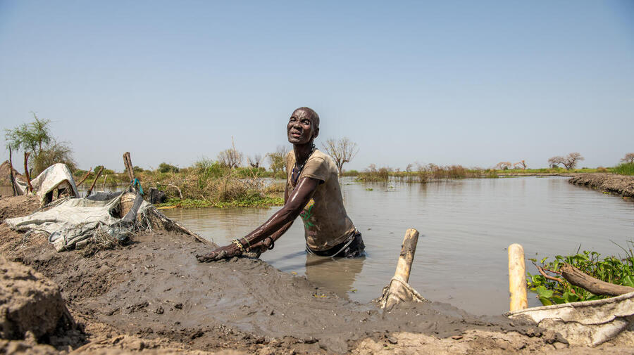 « Le Soudan du Sud est le plus jeune pays au monde. Il fait face non seulement aux conflits, mais il doit relever des défis liés au changement climatique », a souligné Andrew Harper, conseiller spécial du HCR pour l’action climatique, lors d'une conférence de presse à Juba, la capitale du Soudan du Sud, après avoir visité les zones frappées par les inondations en mars dernier. « Il y a un esprit communautaire très fort qui s'adapte face à ces changements, ils font tout ce qu'ils peuvent pour protéger leurs communautés, leurs fermes et leur bétail, mais ils ont besoin de soutien. »