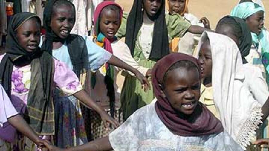 Au Tchad, dans le camp d'Iridimi, des écoliers font la ronde dans la cour.