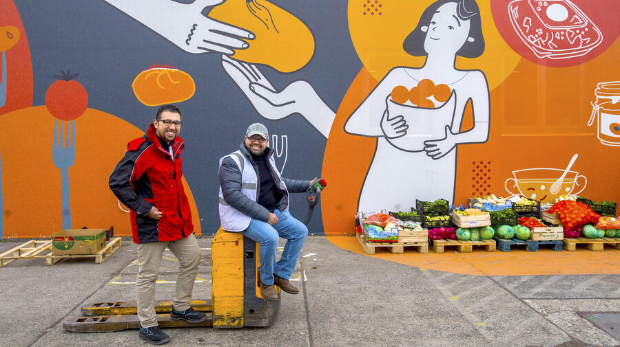 À mesure que la journée avance dans l'entrepôt de Wiener Tafel, Ali trie des tomates cerise pendant que Rozh charge des cageots dans un camion garé à l'extérieur. Les deux amis sont arrivés séparément en Autriche en 2015 et se sont rencontrés à Vienne. Ali est marié et a une fille de quatre mois tandis que Rozh, divorcé, vit seul en Autriche. En Iraq, ils ont tous deux subi des violences sectaires.