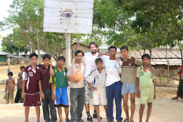 L'entraîneur de basket-ball Pero (au centre, avec une barbe) donne l'espoir à ses amis réfugiés musulmans au Bangladesh qu'ils peuvent accomplir beaucoup de choses dans leur vie - sur le terrain et en dehors.