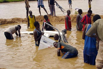 Une équipe de l'UNHCR, de retour d'un camp situé près de Farchana et ne pouvant traverser un ouadi pour regagner sa base, a dû stationner les véhicules auprès des gendarmes en charge de la sécurité du camp, et traverser l'ouadi à pied. Un véhicule appartenant à l'organisation Hebrew Immigrant Aid Society (HIAS) a été renversé par le courant, lors de la traversée d'un ouadi.