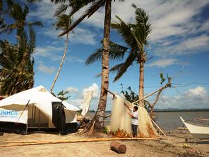 Le HCR travaille à Cebu pour coordonner la logistique de l'acheminement du matériel de secours pour les rescapés du typhon. L'organisation transporte par avion-cargo des tentes et des articles non alimentaires pour 80 000 personnes. Elle prévoit également de distribuer des lampes à énergie solaire pour renforcer la sécurité des femmes et des enfants vulnérables. En tant que co-chef de file, avec les autorités, du groupe de travail sur la protection dans le cadre de la réponse interagence à cette catastrophe naturelle, le HCR assure également une coordination et des prestations en matière de protection, en identifiant les personnes les plus vulnérables et en leur assurant l'accès à l'assistance et aux services essentiels.