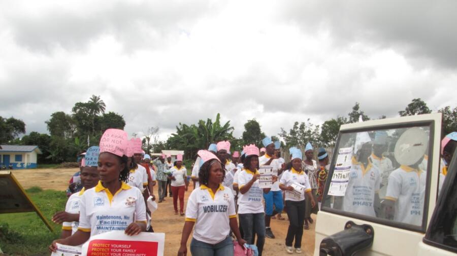 Maison par maison, quartier par quartier, ils frappent aux portes et préviennent les familles : « Lavez-vous les mains. » Ce geste simple peut sauver des vies dans l'un des pays les plus touchés par le virus Ebola. Dans certaines parties du pays, il est difficile de mener des actions de sensibilisation et d'information contre la propagation de la maladie du fait des routes impraticables et de la pénurie de réseaux de communication.