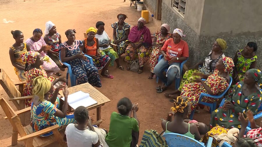 Dans une cour poussiéreuse à la périphérie de la capitale de la République centrafricaine, Bangui, un groupe de femmes discute, assises. Elles se réunissent ici chaque semaine pour faire le point les unes avec les autres et discuter de leurs problèmes et de leurs triomphes. Veuve et ancienne déplacée centrafricaine, Florence Atanguere les dirige.
