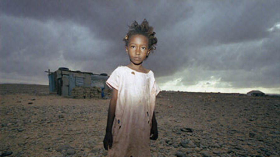 Une fillette devant un abri de fortune sur la côte nord de la Somalie. Avec sa famille, elle tentera la traversée périlleuse du golfe d'Aden.