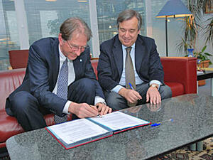 « Je suis très heureux de vous accueillir à l'UNHCR », a dit António Guterres à la Princesse durant une première réunion dans son bureau. « Le Danemark a une très longue tradition de l'asile ... et ce pays est un partenaire très important dans le travail auprès des réfugiés à travers le monde. »