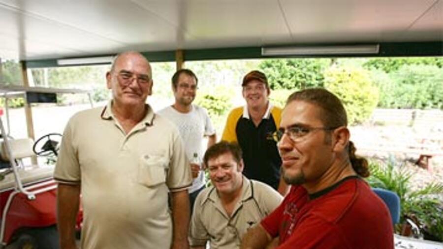 Mohammed Faisal (à droite) fête sa liberté retrouvée avec quelques amis de l'hôpital de Brisbane, où il a passé cinq mois.