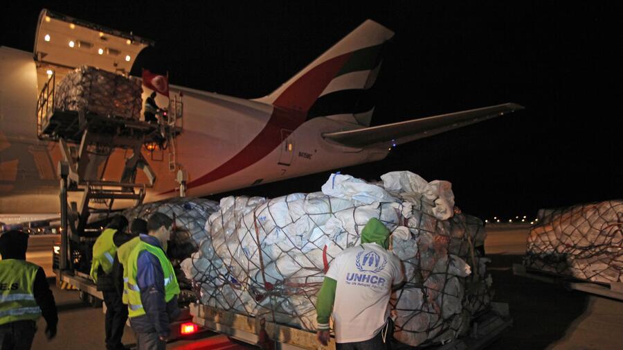 Samedi, un avion-cargo affrété par le HCR - transportant à son bord plus de 100 tonnes de matériel humanitaire pour aider 10 000 personnes - a atterri à Djerba en Tunisie. Les biens de secours seront ensuite acheminés vers la frontière libyenne pour porter assistance à des milliers de personnes qui affluent chaque jour après avoir fui la violence en Libye. Le Boeing 747 cargo avait à son bord une cargaison de 2 000 tentes, de 2 000 bâches en plastique, de milliers de couvertures, de matelas, de batteries d'ustensiles de cuisine et de jerrycans.