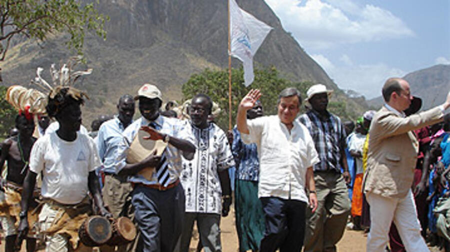 António Guterres était à Kalongo, au deuxième jour de sa mission d'une semaine, pour se rendre compte des programmes menés par l'UNHCR pour les réfugiés et les déplacés en Ouganda et en Tanzanie. Il a dit à Chidonia Anyiek, une déplacée et mère de neuf enfants, qu'il reviendrait lui rendre visite dans quelques mois quand elle sera rentrée dans sa maison.