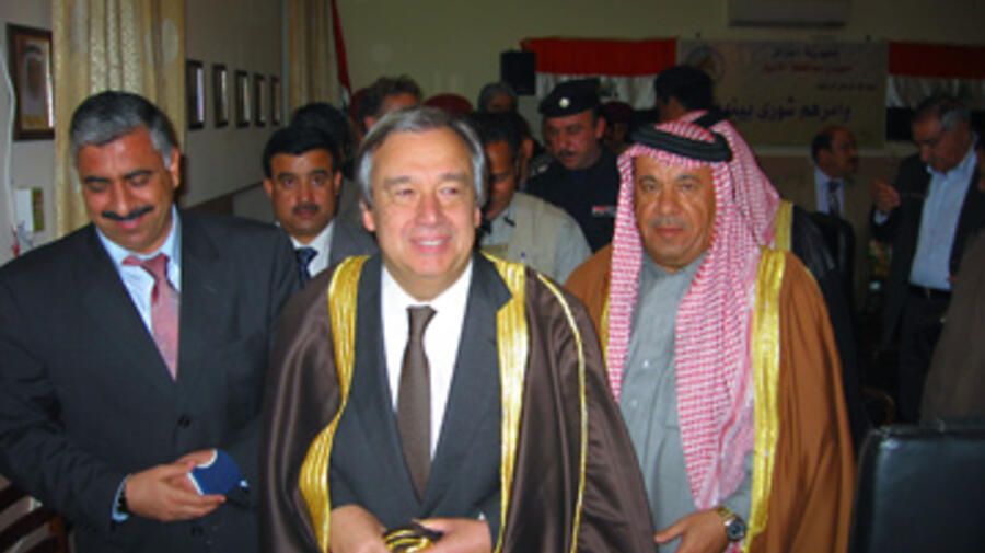« Actuellement, nous accroissons notre présence à l'intérieur de l'Iraq », a dit António Guterres à quelque 20 hauts fonctionnaires de la province d'Anbar et de la municipalité de Ramadi, ainsi qu'à des chefs tribaux. « Nous disposerons d'une présence dans 14 governorats au début de l'année prochaine, y compris ici à Ramadi. »