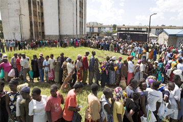 Cette dernière distribution est la seconde organisée par l'UNHCR. La semaine passée, l'agence avait fourni à la Croix-Rouge kényane quelque 400 trousses familiales pour une distribution destinée à environ 2 000 familles nécessiteuses vivant pour l'essentiel dans les bidonvilles de Nairobi. Un total de 3 200 trousses familiales pour quelque 16 000 personnes ont maintenant été préparées dans nos entrepôts de Nairobi et sont prêtes à être distribuées pour venir en aide aux personnes déplacées internes dans les provinces touchées.