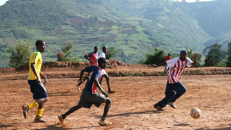 Baudouin Lubashu Mololoa, un prêtre catholique de 40 ans, aide des personnes comme Christian à traiter leur problème et les souvenirs douloureux à travers la foi et le sport. Il organise un match de football tous les jours pour les réfugiés déterminés à maintenir leur santé physique et leur bien-être psychologique. Les ballons de football ont été recousus de nombreuses fois et l'une des cages de but sur le terrain manque d'une barre transversale. Mais chaque matin de jeu commence sur une note positive.