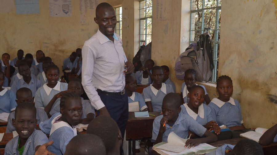 Unity Primary est l’une des plus grandes écoles du camp de réfugiés de Kakuma, dans le nord du Kenya, et il est difficile de prendre la mesure des difficultés auxquelles les enseignants y sont confrontés. Les classes comptent souvent 90 à 100 élèves et il n’est pas rare d’y voir 200 élèves par classe. Autant dire qu'inspirer les écoliers et susciter leur participation constitue un défi considérable. Pour un enseignant, il est aussi difficile de rester motivé dans ces circonstances.