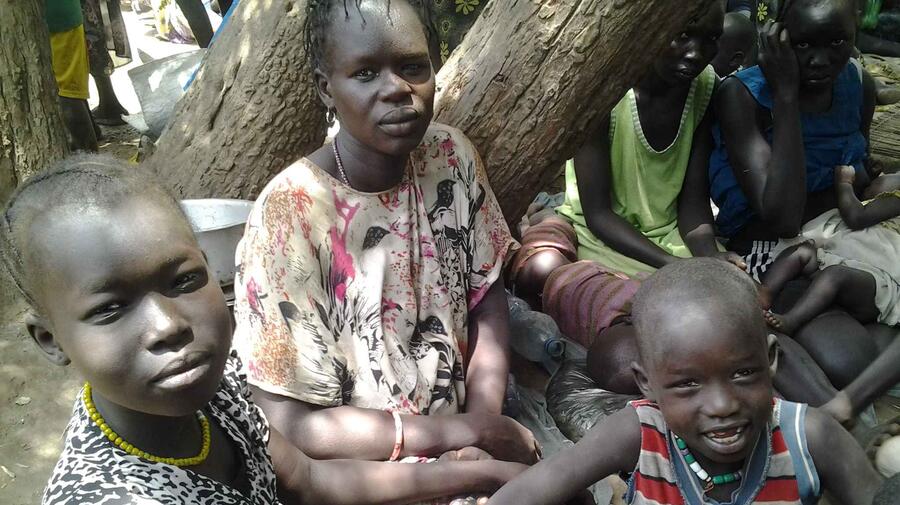 Une femme sud-soudanaise et ses deux enfants se reposent sous un arbre après avoir fui leur pays et franchi la frontière avec l'Ethiopie au point d'entrée de Pagak en début de semaine.