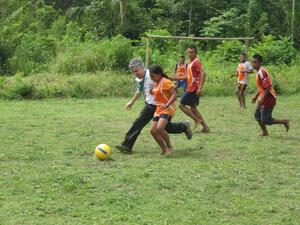Un grand nombre de réfugiés plus jeunes, comme Arsène, jouent au football dans le camp et suivent à la télévision le FC Barcelone et les autres grandes équipes européennes. « Je n'arrive pas à croire que le Président du Barça soit ici. Nous sommes très heureux. Cela signifie beaucoup pour nous », a expliqué Arsène.