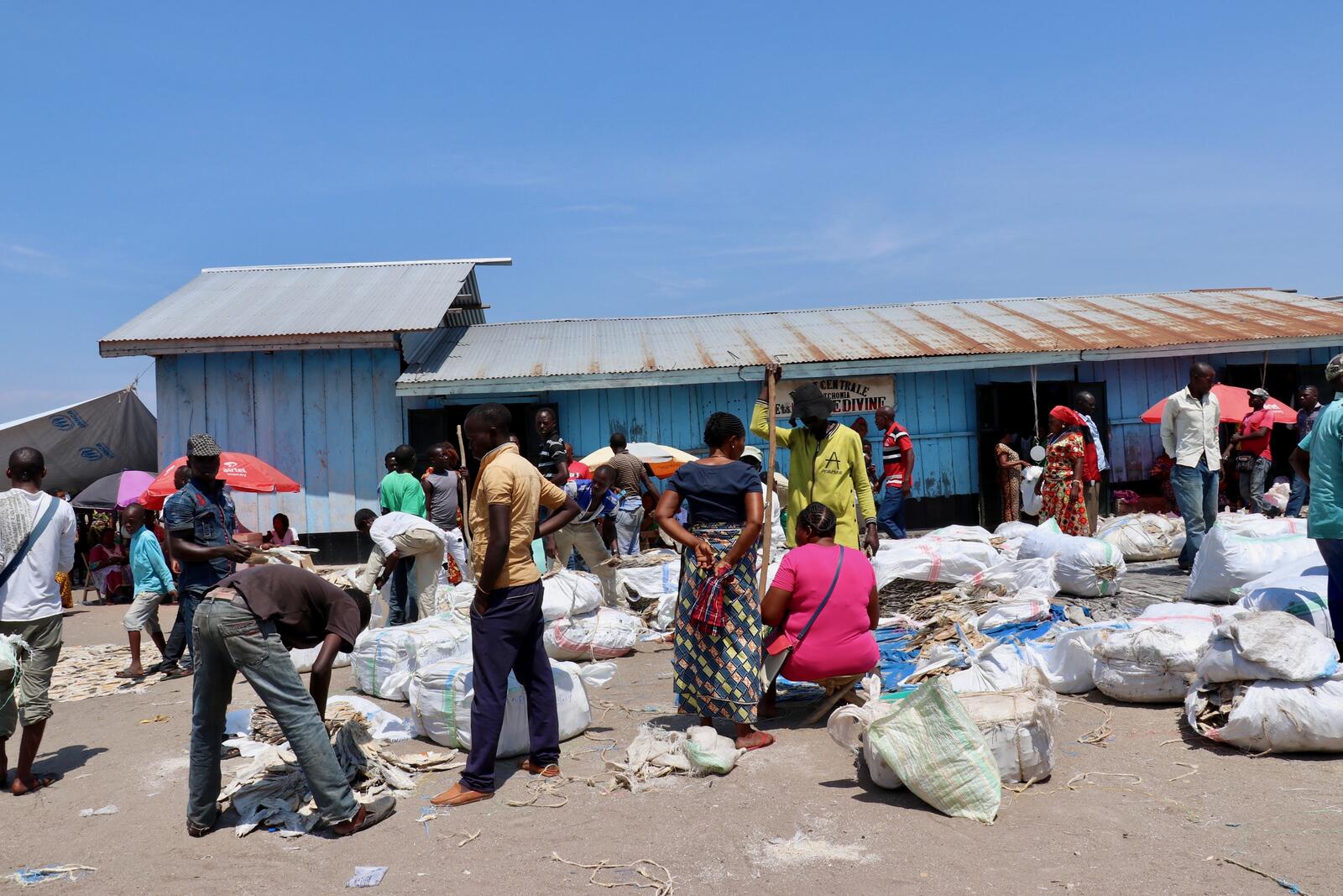 TCHOMIA, République démocratique du Congo - Des bateaux de pêche bordent les rives du lac Albert dans le nord-est de la République démocratique du Congo et les enfants jouent dans l’eau. Les adultes se pressent sur le marché très animé.