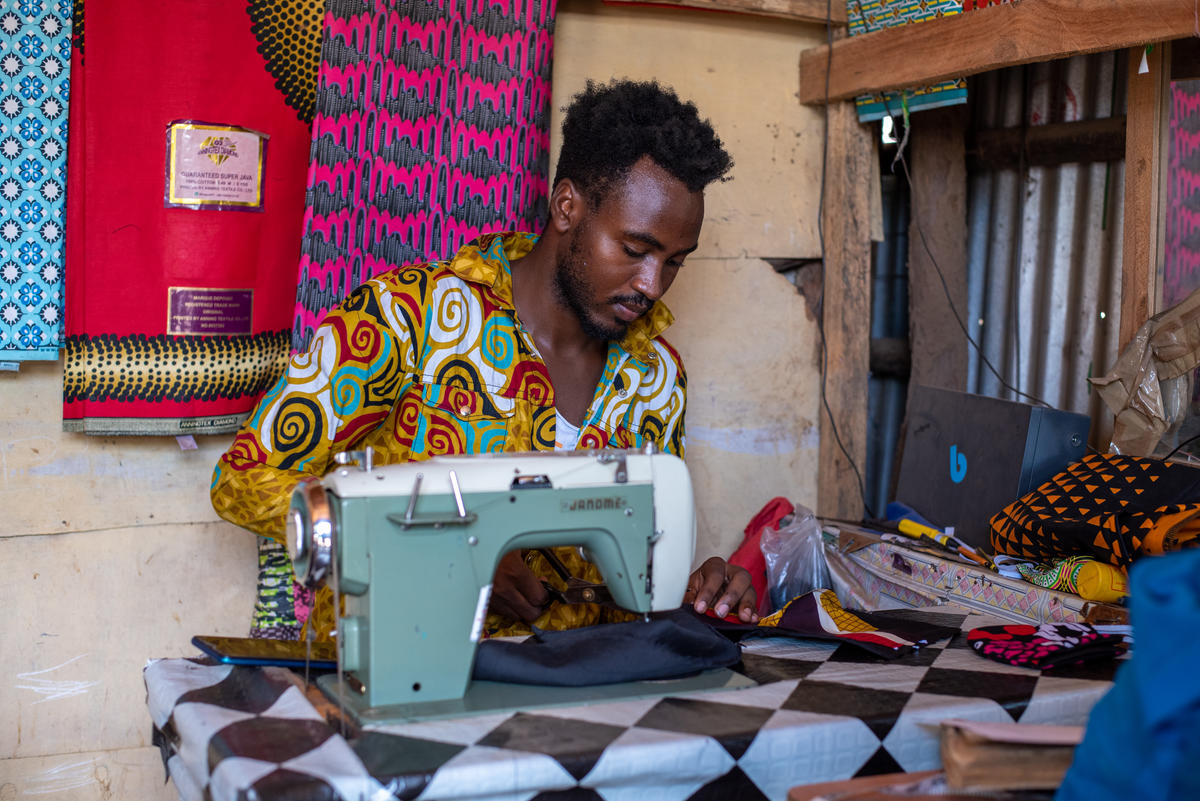 Maombi Samil, un réfugié âgé de 24 ans et originaire de la République démocratique du Congo, dirige une entreprise de création de mode et de couture dans le camp de Kakuma, au nord-ouest du Kenya. Il s'est rendu compte que ses compétences pouvaient être mises à profit.