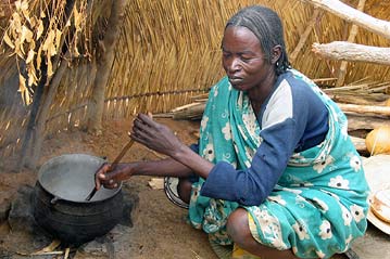 La sécurité et le ravitaillement sont des problèmes graves pour les femmes déplacées du Darfour, comme par exemple pour cette femme qui se démène pour nourrir sa famille de 6 personnes dans un camp du Darfour occidental.