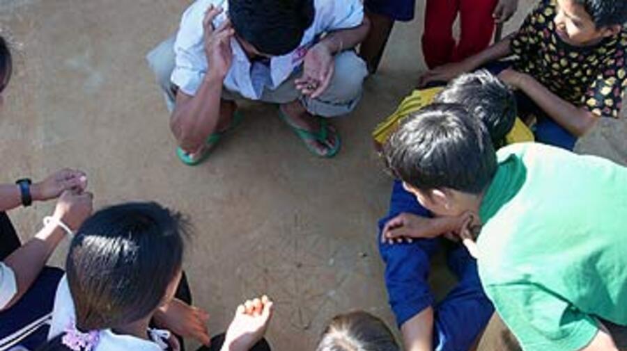 Un moment de détente pour ces jeunes montagnards vietnamiens, pendant leur exil à Ratanakiri, au Cambodge.
