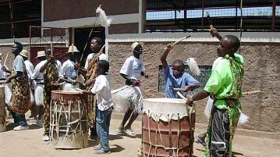 Au camp de réfugiés de Kakuma, au Kenya, des réfugiés accueillent chaleureusement au son des tambours le Haut Commissaire António Guterres, à la fin de sa visite de dix jours au Soudan, Tchad et Kenya.