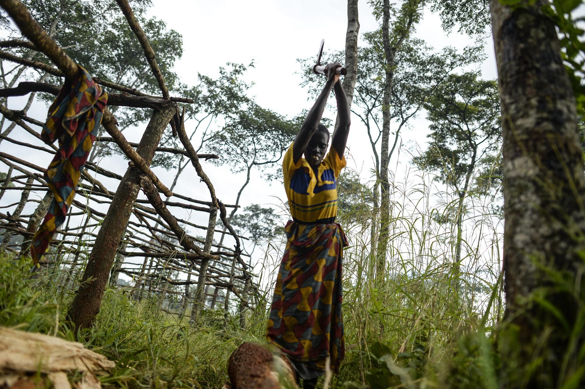Une vieille femme coupe du bois mort dans la forêt. Plus d'un quart de million de Burundais a fui vers les pays voisins depuis le début avril 2015, la plupart d'entre eux vers la Tanzanie.