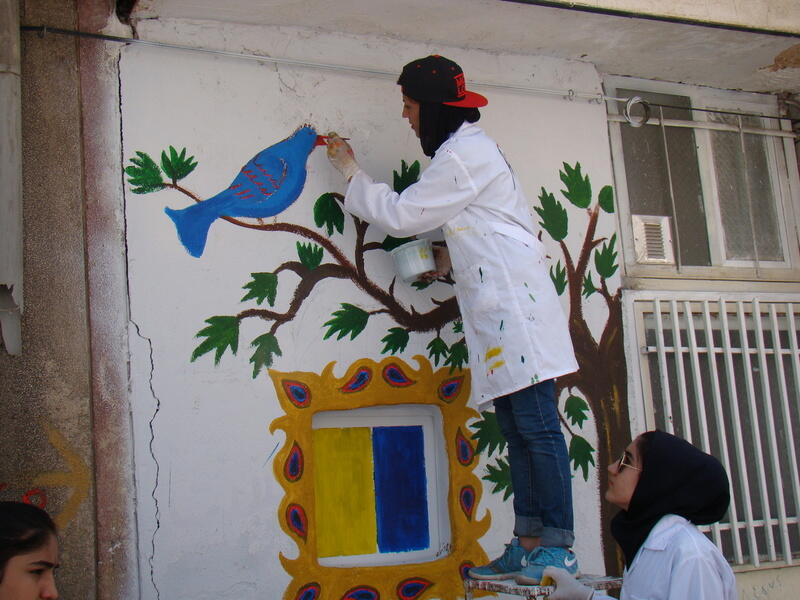Afin de responsabiliser les résidents, le HCR et le gouvernement iranien ont fait travailler tous ensemble des artistes locaux et plus de 60 bénévoles de la communauté pour concevoir et mettre en œuvre un projet « de nettoyage et de peinture ».