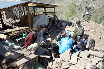 L'UNHCR a déclaré avoir également établi une entrepôt sous tentes à Mansehra, dans la Province frontière du Nord-Ouest, pour le stockage provisoire d'articles non alimentaires. Le travail humanitaire est aussi géré à partir de cette base. La semaine dernière, l'UNHCR a commencé à distribuer des tentes depuis ses réserves pakistanaises à la population touchée aux alentours de Mansehra. Au moment où les premiers avions et le convoi de camions en provenance de Kaboul sont arrivés, les réserves que l'agence des Nations Unies pour les réfugiés détenait au Pakistan étaient déjà presque épuisées.
