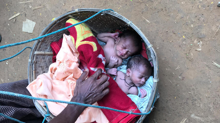 Je travaillais dans l’installation de Kutupalong et j'ai reçu un appel du centre d'accueil me demandant de venir. Je me suis précipité et j'ai trouvé un jeune homme qui portait un panier enveloppé d'un tissu. Je lui ai demandé d'enlever le tissu et j'ai vu deux petits bébés à l'intérieur. Ils étaient jumeaux, un garçon et une fille.