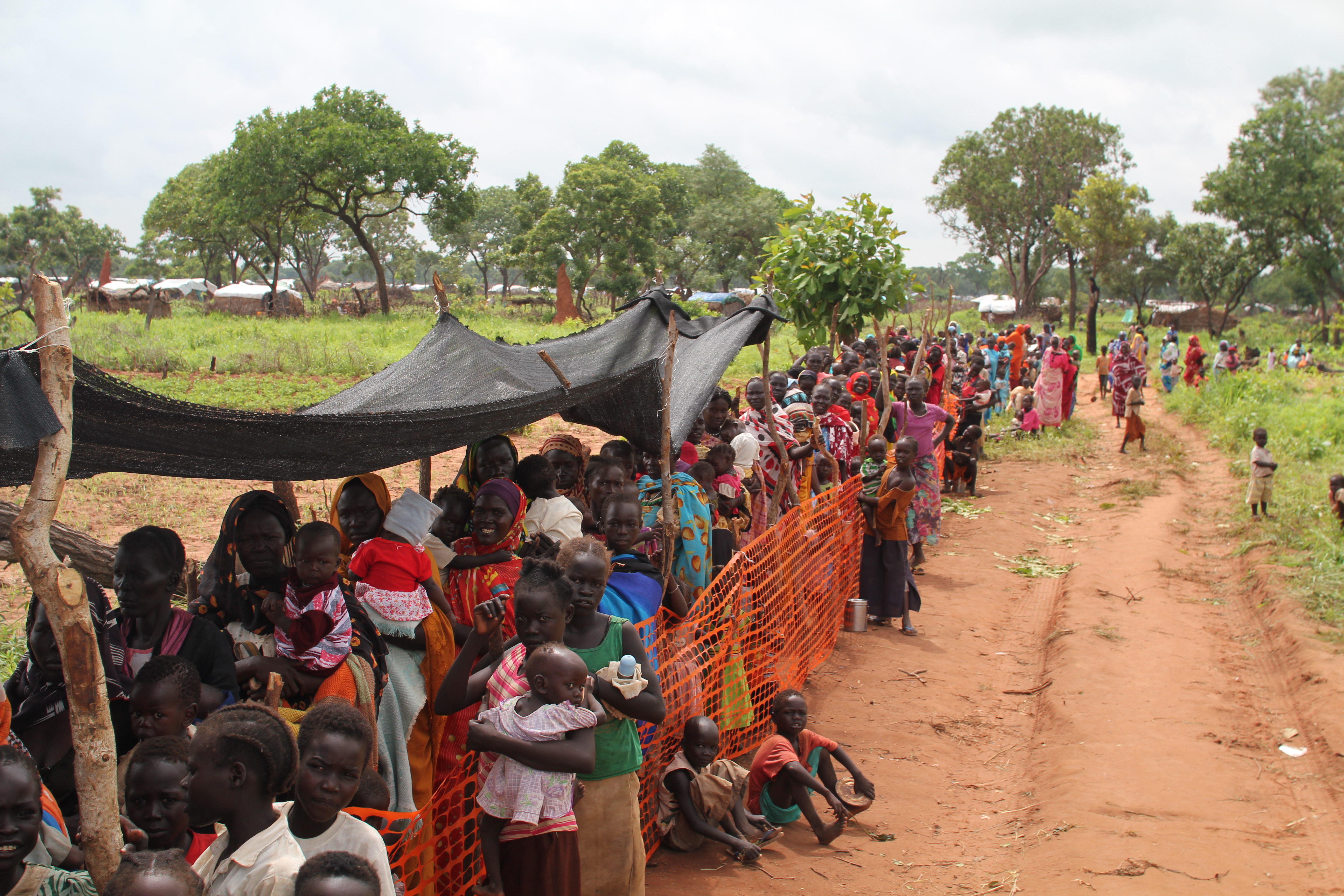 Des femmes et des enfants soudanais dans une file d'attente pour recevoir un traitement contre la malnutrition, après leur arrivée au camp de réfugiés de Yida.