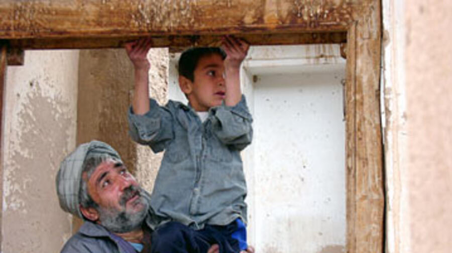De retour après huit ans d'exil en Iran, Abdul Sattar et son jeune fils inspectent leur maison endommagée dans la province d'Herat, à l'ouest de l'Afghanistan.