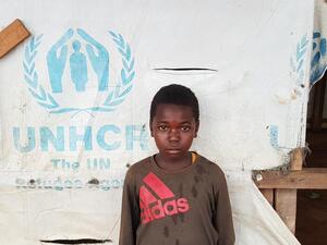 Jean-Pierre, sa mère, sa femme et leurs quatre enfants vivent désormais dans le village démuni de Kpakpo en RDC, qui abrite 800 personnes ayant fui les villages bordant le fleuve en RCA.