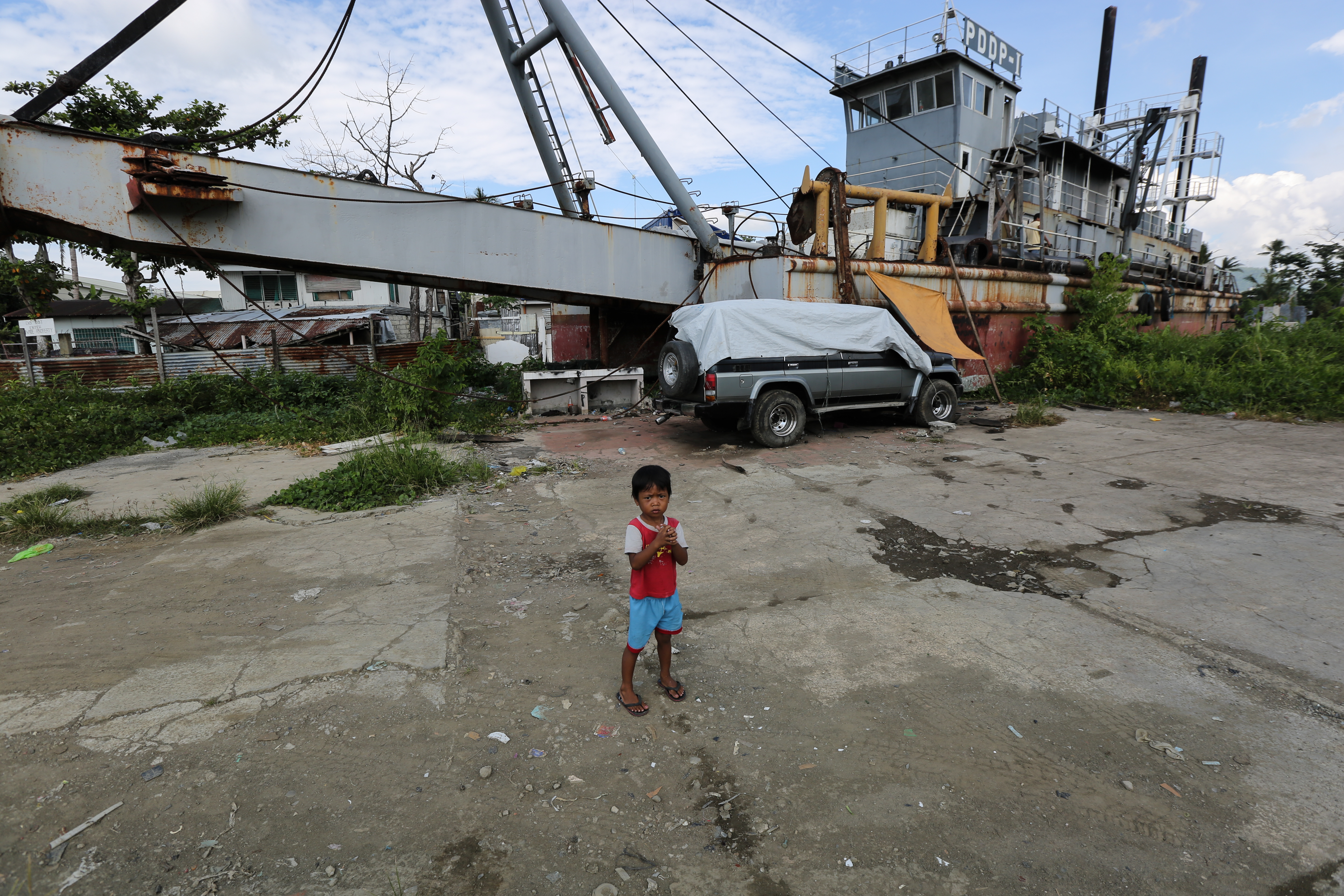 TACLOBAN, Philippines, 6 novembre (HCR) - Le navire dragueur imposant est presque menaçant. Il domine les maisons du voisinage. Les enfants courent autour du navire, ils jouent en semblant avoir oublié la tragédie qui l'avait déplacé à cet endroit. Quelqu'un a néanmoins griffonné sur la coque du navire un message qui raconte une histoire différente : Stupide Yolanda.