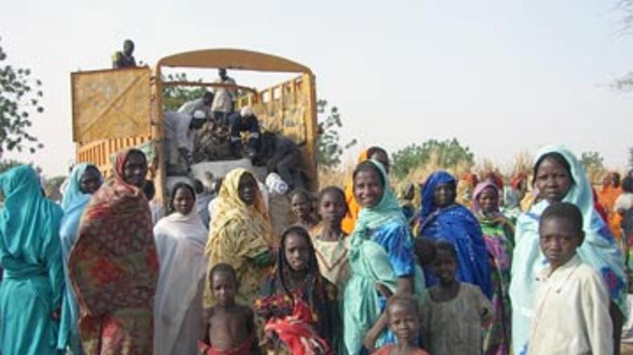 Un convoi de 14 camions, organisé par l'Organisation internationale pour les migrations et transportant 221 réfugiés et plusieurs ânes, a quitté le village d'Arara à la frontière entre le Tchad et le Soudan, samedi. Il est arrivé le lendemain dans le camp de réfugiés d'Um Shalaya géré par l'UNHCR, situé à environ 75 kilomètres à l'intérieur du Darfour.