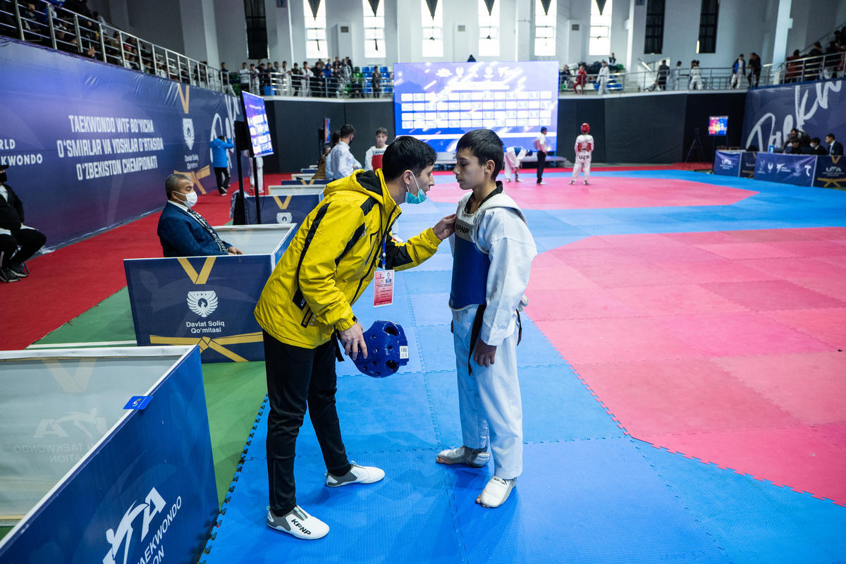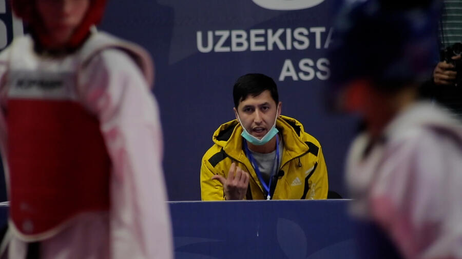 « Les sportifs ont toujours des sentiments patriotiques plus forts que les autres, car ils représentent le pays », affirme-t-il, assis dans le hall du bâtiment de la Fédération de taekwondo d'Ouzbékistan avant le combat de l'un de ses élèves.