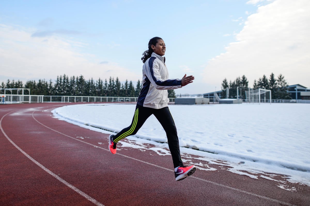 « On s’est déjà entrainé une fois lorsqu’il avait neigé. Ce n’était pas un problème, on ne le sentait pas car on s’était bien échauffé, » dit-elle, en arborant un grand sourire.