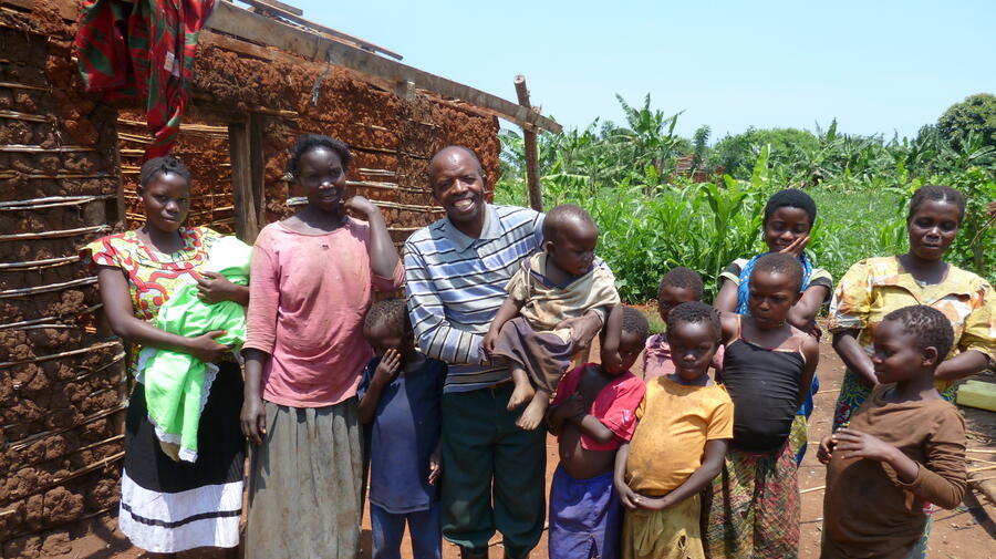 KYANGWALI, Ouganda, 24 septembre (HCR) - Ndianabho Baptiste Lubhoiyo frappe des mains pour calmer ses enfants. Ce réfugié congolais enjoué et âgé de 51 ans ainsi que sa famille viennent d'arriver, en début de mois, à l'installation de réfugiés de Kyangwali dans le centre-ouest de l'Ouganda après un long voyage depuis le centre de transit près de la frontière.