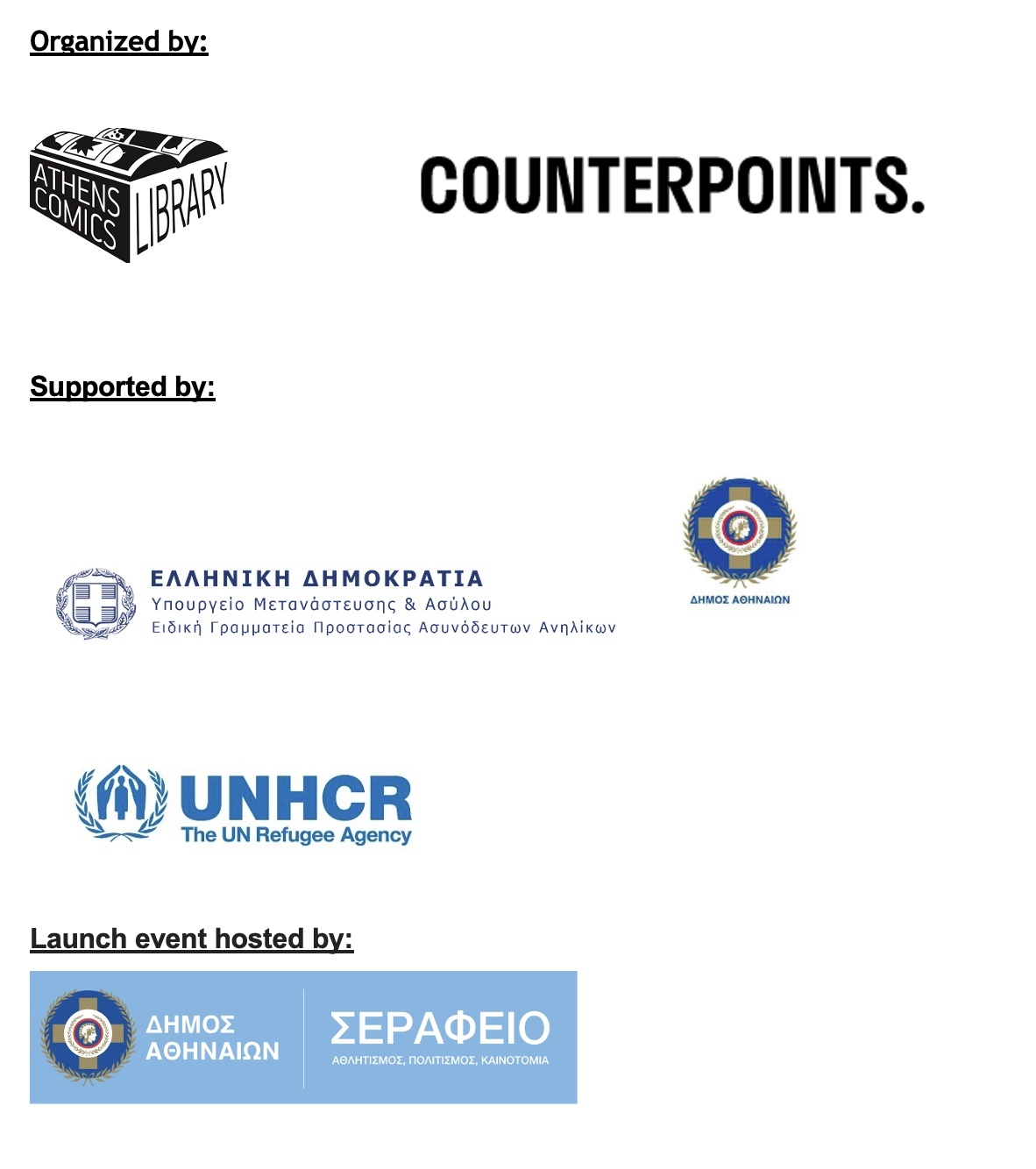 Refugee Week Greece is supported by the City of Athens, the Special Secretary for the Protection of Unaccompanied Minors of the Ministry of Migration and Asylum and UNHCR, the UN Refugee Agency.