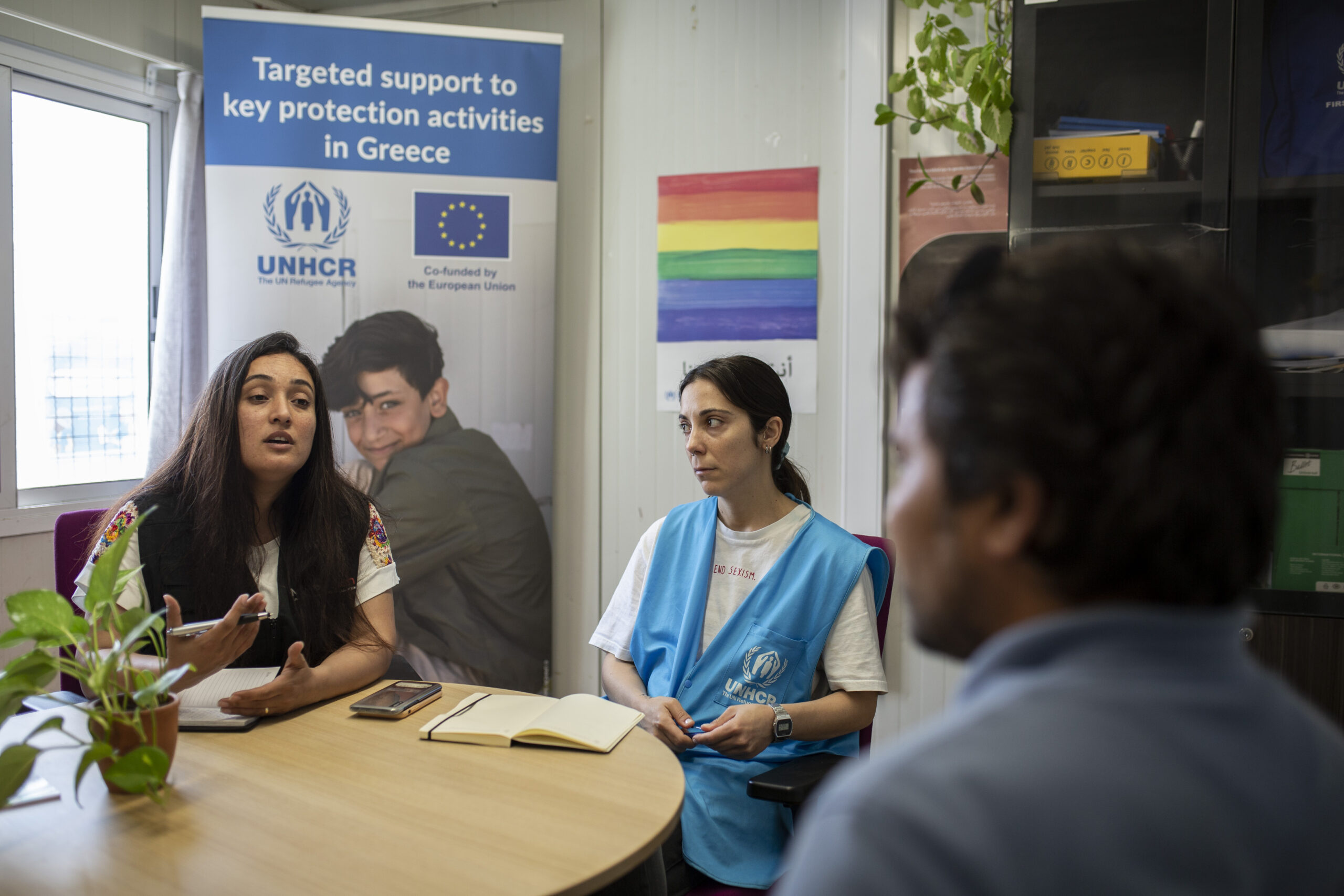 Στην Κλειστή Ελεγχόμενη Δομή της Λέσβου, ένα μέλος της ομάδας Προστασίας της Ύπατης Αρμοστείας υποδέχεται τον Aziz*, αιτούντα άσυλο από το Αφγανιστάν. Δίπλα τους κάθεται η Νίκη, η οποία πριν από την έναρξη της συνεδρίας εξηγεί το ρόλο της, αλλά και τον εμπιστευτικό χαρακτήρα των όσων θα συζητηθούν. Στη συνέχεια, με ήρεμο τόνο στη φωνή της, μεταφράζει όσα περιγράφει ο Aziz για τις ανάγκες της οικογένειάς του και τις συμβουλές του εργαζόμενου της Ύπατης Αρμοστείας αντίστοιχα.