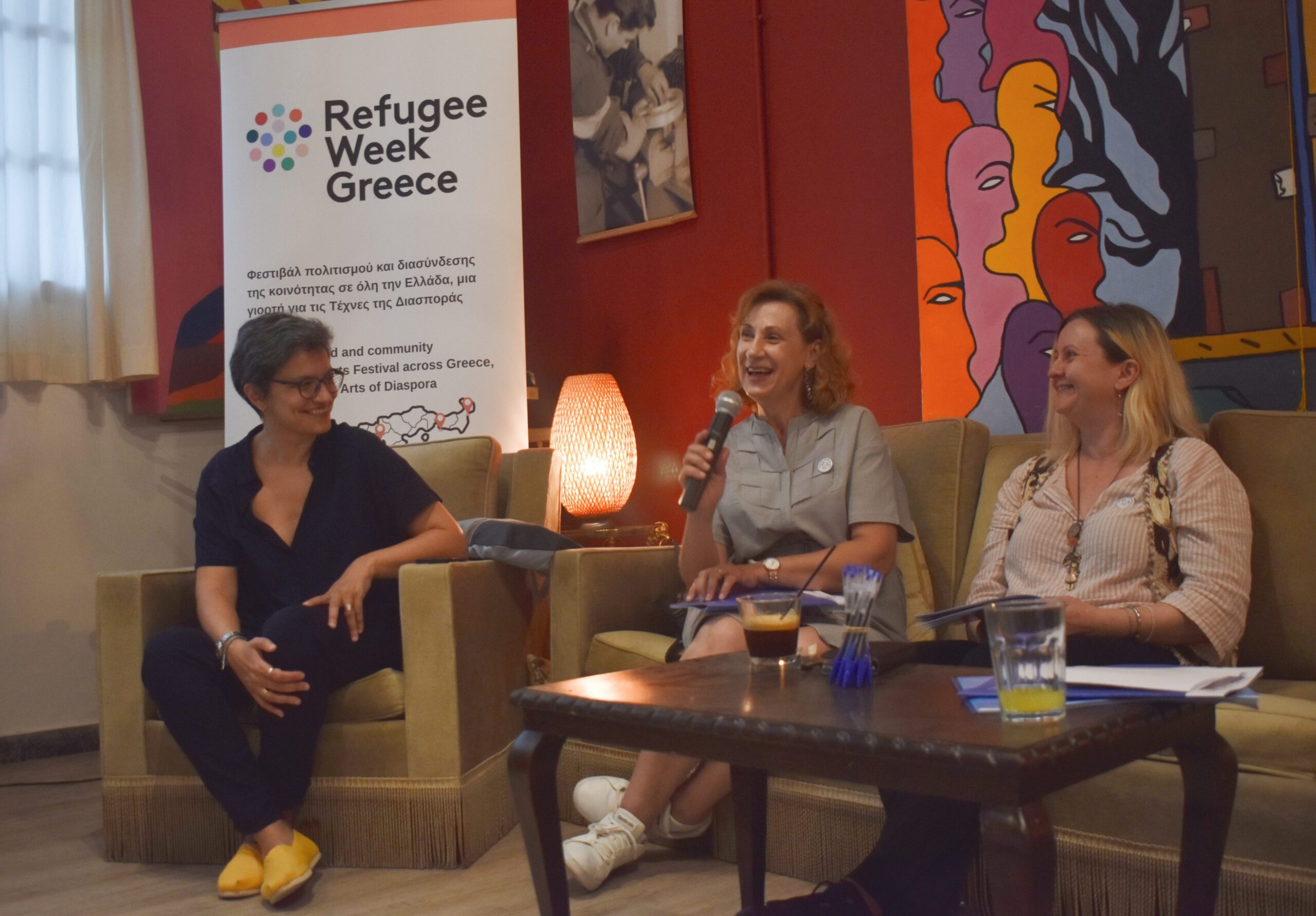 Aνήμερα της Παγκόσμιας Ημέρας Προσφύγων η Ύπατη Αρμοστεία βρέθηκε με προσφυγικές κοινότητες και εταίρους στο T.A.F. / Τhe ArtFoundation σε μια εκδήλωση στο πλαίσιο του φεστιβάλ Refugee Week Greece. Στην τέταρτη κατά σειρά συνάντηση του κύκλου ανοιχτών συζητήσεων «Πρόσφυγες Μιλούν στους Πρόσφυγες», που είχε ως θέμα τη γυναικεία ενδυνάμωση και ένταξη, η Yana Danyuk αναφέρθηκε στην επαγγελματική της πορεία στην Ουκρανία, όπου έφτασε να έχει τη δική της συλλογή ρούχων και μπιζού πριν από τον πόλεμο. Η Yana επισήμανε ότι η κύρια πρόκληση που αντιμετώπισε ήταν η γλώσσα, καθώς και η γραφειοκρατία που απαιτείται για να μπορέσει κάποιος να ανοίξει τη δική του επιχείρηση στην Ελλάδα. Ενώ η ίδια προσπαθεί να ξαναπιάσει το νήμα της δικής της επιχείρησης, μέσα και από ένα πρόγραμμα συμβουλευτικής που παρακολούθησε στην οργάνωση Nostos με την υποστήριξη της Ύπατης Αρμοστείας, τόνισε ότι οι πρόσφυγες χρειάζονται χρηματοδοτική στήριξη και πιστοποίηση των προσόντων τους. Η Soodabeh Balesini, που άφησε πριν από 27 χρόνια τη ζωή και τις σπουδές της στο Ιράν, μίλησε για την πορεία της στην Ελλάδα και πώς έφτασε να εργάζεται ως διερμηνέας «νιώθοντας περήφανη που έχει βοηθήσει τόσους ανθρώπους σε όλα τα στάδια της υποδοχής τους». Ενώ όταν έφτασε η ίδια στην Ελλάδα δεν υπήρχε κανένα πρόγραμμα βοήθειας στους πρόσφυγες, κράτησε την ελπίδα της ζωντανή μέσα από τη στήριξη που είχε από ανθρώπους που βρέθηκαν γύρω της. «Θα πρέπει να κοιτάμε πίσω στο παρελθόν, στα εμπόδια που καταφέραμε να ξεπεράσουμε και να παίρνουμε δύναμη από αυτό. Τίποτα δεν είναι αδύνατο», ήταν το μήνυμα που θέλησε να στείλει σε άλλους πρόσφυγες.