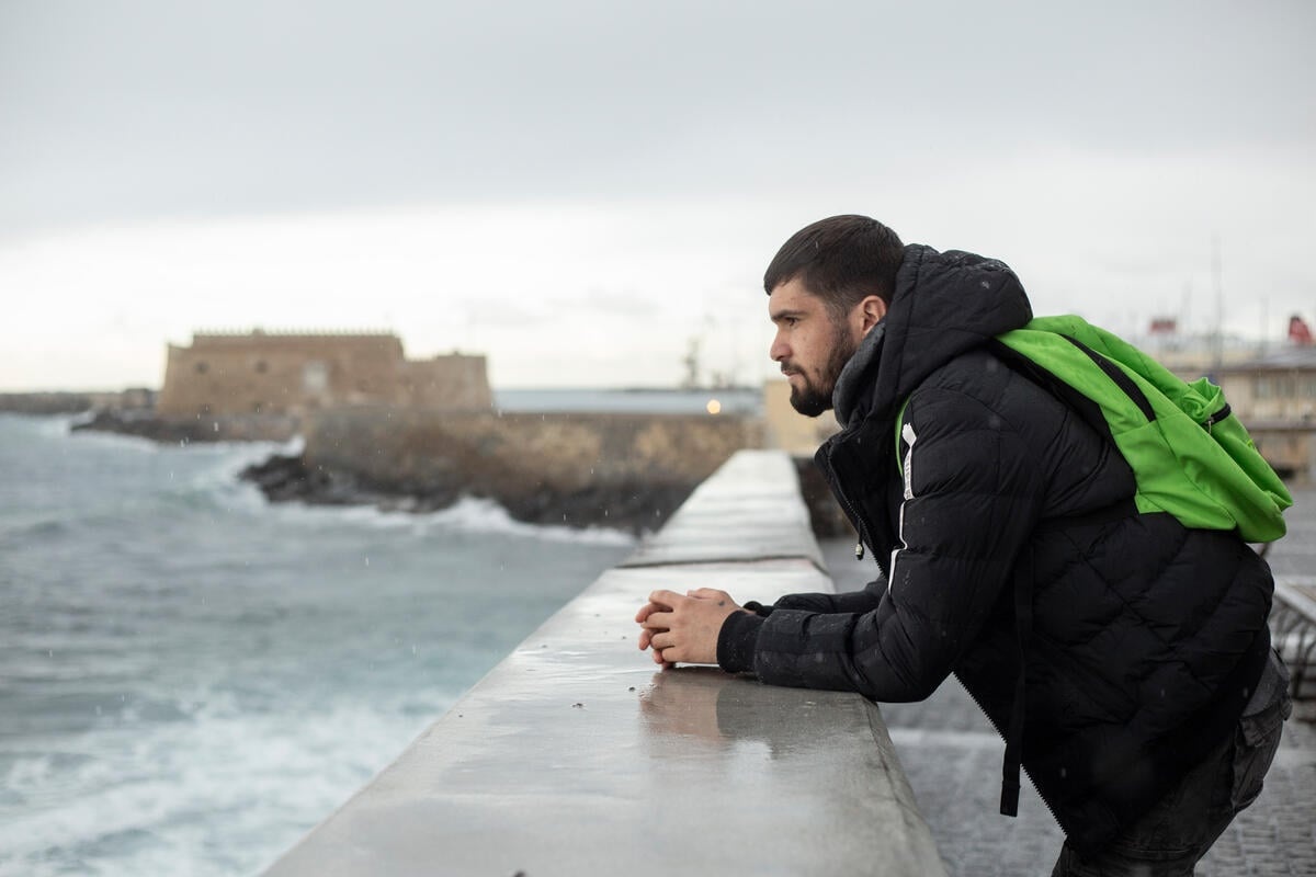 O 20χρονος Nidal στην προκυμαία του Ηρακλείου στην Κρήτη. ©UNHCR/Socrates Baltagiannis