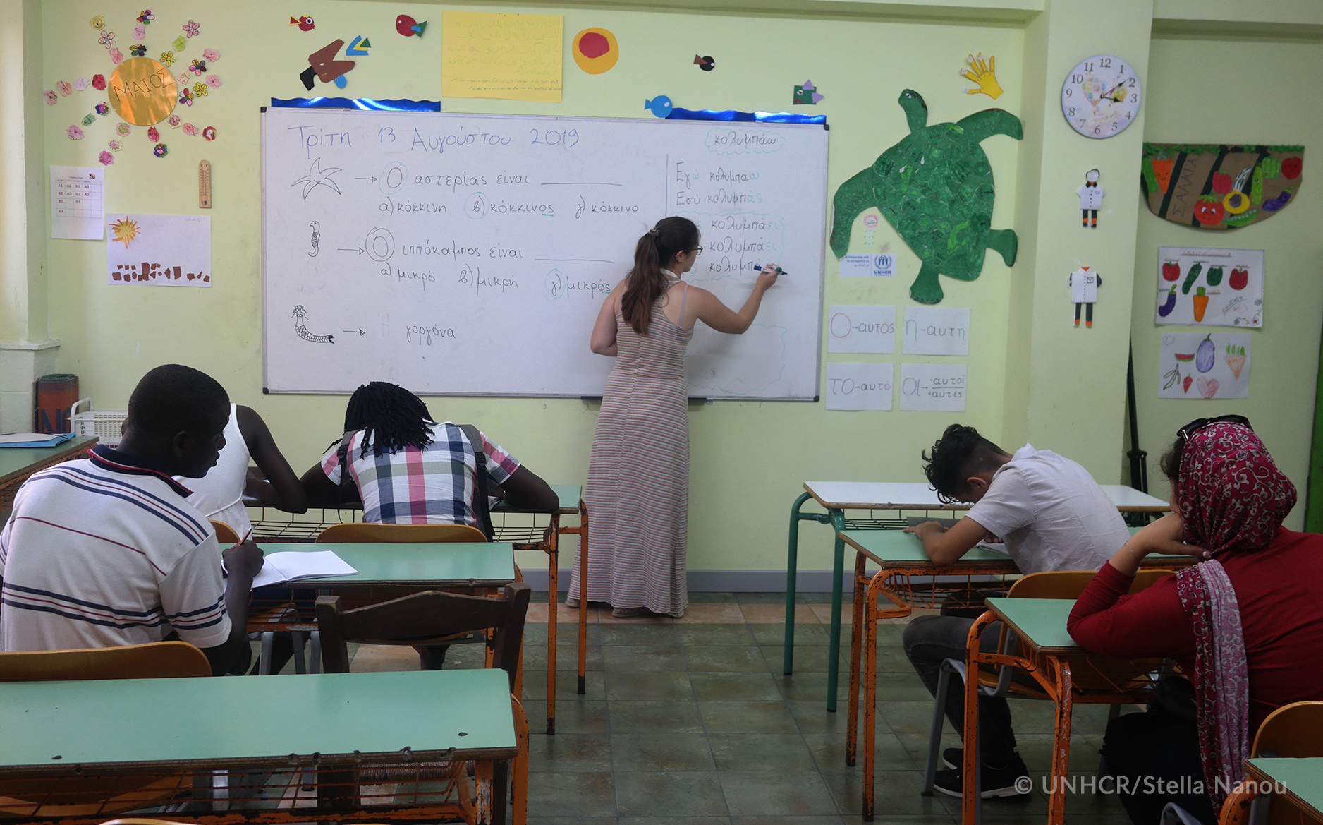 Από την επίσκεψη του κ. Leclerc στο σχολείο KEDU στην Κω. © UNHCR/Stella Nanou