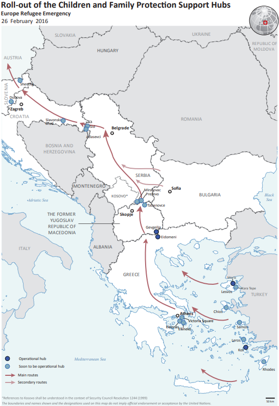 Στο πλαίσιο ενός κοινού εγχειρήματος για την ενίσχυση της προστασίας των αυξανόμενων αριθμών των παιδιών και άλλων ανθρώπων με ιδιαίτερες ανάγκες που φτάνουν στην Ευρώπη, η Ύπατη Αρμοστεία του ΟΗΕ για τους Πρόσφυγες (Υ.Α.) και η UNICEF δημιουργούν ειδικά κέντρα φροντίδας για παιδιά και οικογένειες κατά μήκος των πιο συχνά χρησιμοποιούμενων μεταναστευτικών οδών στην Ευρώπη.